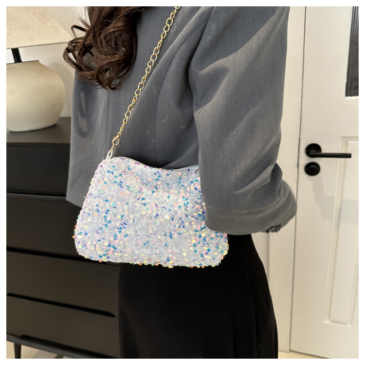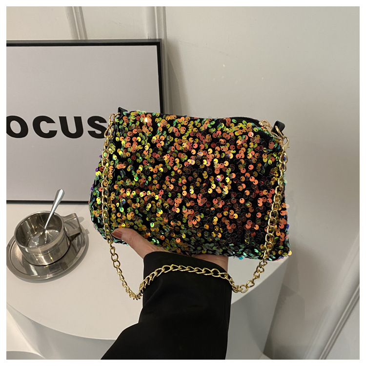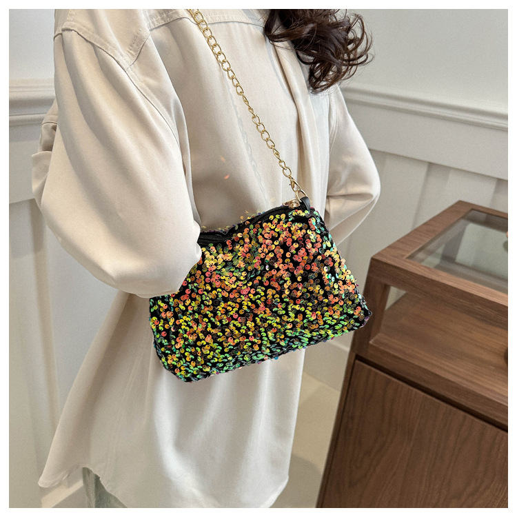 Contrast Color And Versatile Sequined Underarm Bag For Women